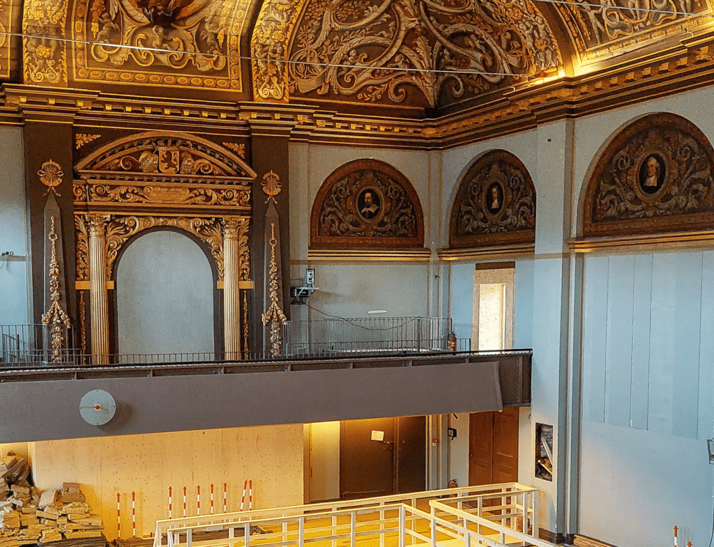 De Ridderzaal zelf, die midden in het gebied staat waar gewerkt wordt, is rondom ook in de meetbouten en prisma gezet en op kwetsbare plekken voorzien van digitale scheurmeters. “In de beuken van de Ridderzaal zijn tiltsensoren met laserafstandmeting geplaatst, waarmee bewegingen tussen de spanten tot op de millimeter gevolgd kunnen worden”, vervolgt Pannekoek. “Het idee is dat als er aan de voorkant verzakking optreedt, dit bovenin tot trekspanningen en mogelijk scheurvorming leidt. Met deze sensoren kunnen we dat direct detecteren. Voor de monitoring van het binnenklimaat zijn in de grafelijke zalen, algemene zaken en Eerste Kamer sensoren geplaatst die temperatuur en luchtvochtigheid meten. Deze zijn gekoppeld aan een automatisch alarmsysteem, zodat bij afwijkingen direct kan worden ingegrepen. Deuren kunnen open staan en het weer heeft direct invloed. Dus wordt er bijvoorbeeld veel regen verwacht, dan kan de aannemer anticiperen op de stijgende luchtvochtigheid met temperatuurregeling of ventilatoren.”
