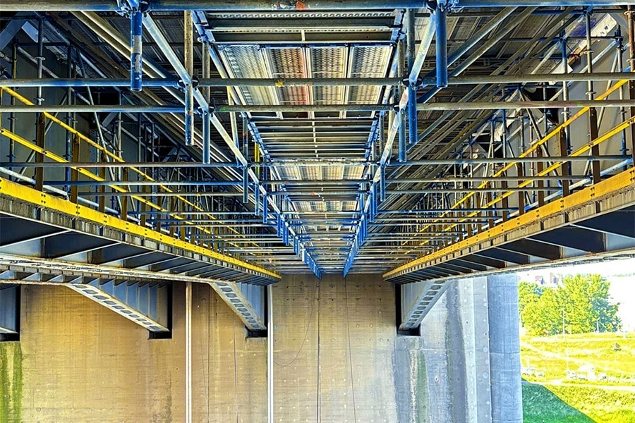 Straal- en Schildersbedrijf Feijenoord heeft de onderzijde van de brug voorzien van een 2-laagssysteem, passend bij de resterende levensduur van de brug én cruciaal om de strakke planning te halen.